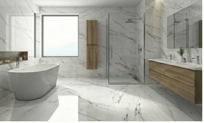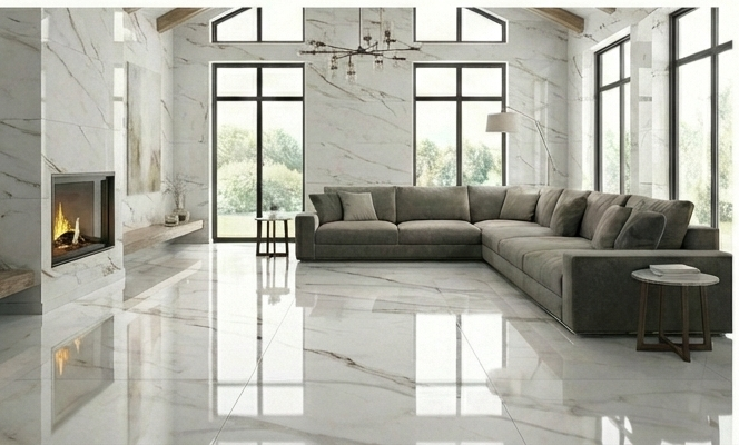 Origin: Turkey Material: Porcelain Size: 60x120 cm Thickness: 9.5 mm Color: White Effect: Marblize Finish: Polish Shape: Rectangle