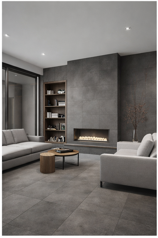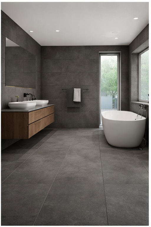 Material: Porcelain Size: 60x120 cm Thickness: 9.5 mm Color: Black Effect: Modern Finish: Matt